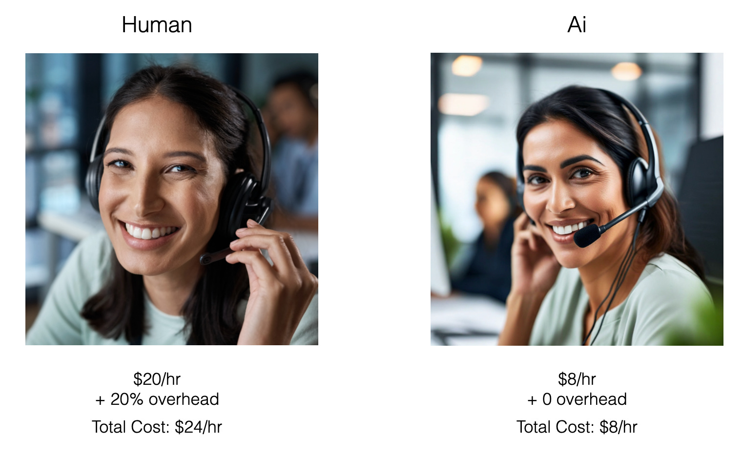 This shift in delivery from human powered SaaS platforms to Ai powered digital labor is opening up a significant opportunity for SaaS companies, namely, hourly billable agents. The article by Sequoia Capital referenced in part 1 of this series further lays out the case how reasoning agents will drive a shift to the hourly billable agent. The new form of "slow thinking" powers models to reason with more real-time data and act with more sound decisions. It also allows companies to expand their business model from one of monthly SaaS seat licenses to a "software + labor" model to create hourly billable agents.